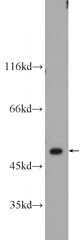 mouse kidney tissue were subjected to SDS PAGE followed by western blot with Catalog No:115224(SETD7 Antibody) at dilution of 1:1000