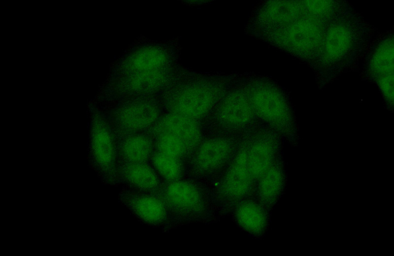 Immunofluorescent analysis of (10% Formaldehyde) fixed HeLa cells using Catalog No:115224(SETD7 Antibody) at dilution of 1:50 and Alexa Fluor 488-congugated AffiniPure Goat Anti-Rabbit IgG(H+L)