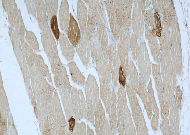 Immunohistochemical of paraffin-embedded human skeletal muscle using Catalog No:115625(ST3GAL5 antibody) at dilution of 1:50 (under 10x lens)