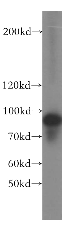 A431 cells were subjected to SDS PAGE followed by western blot with Catalog No:115868(TBC1D5 antibody) at dilution of 1:400