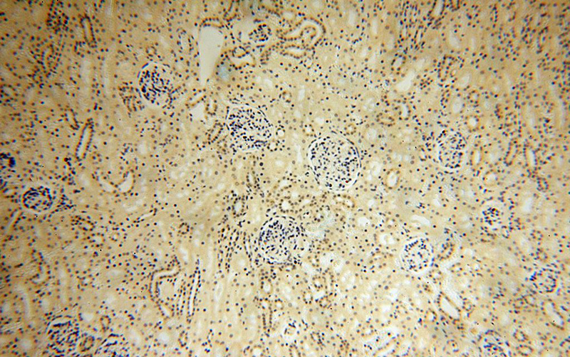 Immunohistochemical of paraffin-embedded human kidney using Catalog No:115868(TBC1D5 antibody) at dilution of 1:100 (under 10x lens)