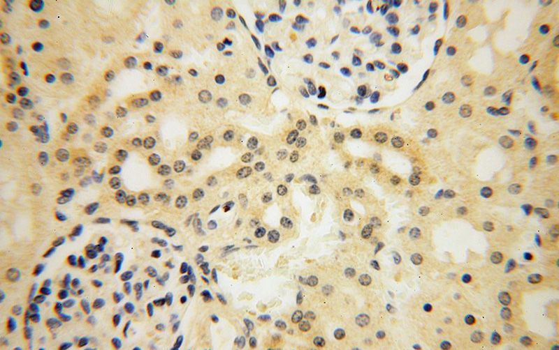 Immunohistochemical of paraffin-embedded human kidney using Catalog No:115868(TBC1D5 antibody) at dilution of 1:100 (under 40x lens)