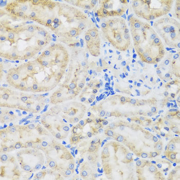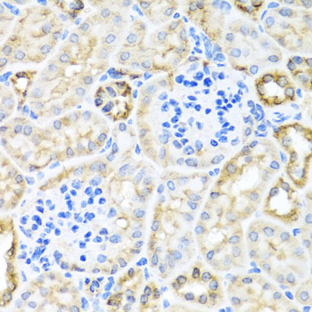 Immunohistochemistry of paraffin-embedded rat kidney using TIRAP antibody at dilution of 1:100 (40x lens).