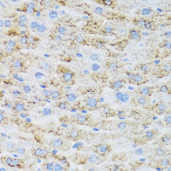 Immunohistochemistry of paraffin-embedded mouse liver using TIRAP antibody at dilution of 1:100 (40x lens).