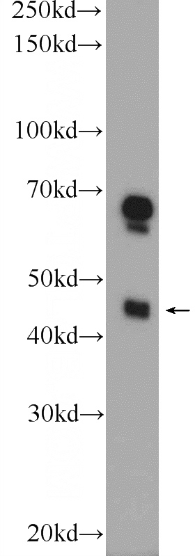 TMEM120A Rabbit Polyclonal antibody. Positive WB detected in HeLa cells. Positive IF detected in HeLa cells. Observed molecular weight by Western-blot: 45 kDa