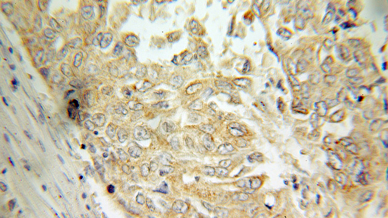Immunohistochemical of paraffin-embedded human lung cancer using Catalog No:116208(TPMT antibody) at dilution of 1:100 (under 40x lens)