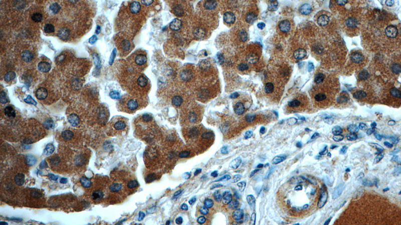 Immunohistochemistry of paraffin-embedded human liver tissue slide using Catalog No:117340(TF Antibody) at dilution of 1:50 (under 40x lens)