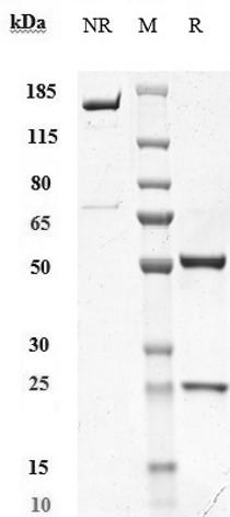Anti-ERBB2 / HER2 / CD340 Antibody (Trastuzumab duocarmazine) on SDS-PAGE under reducing (R) condition. The purity of the protein is greater than 95%.