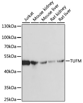 Western blot analysis of extracts of various cells, using TUFM antibody at 1:1000 dilution ratio through one-step method.Secondary antibody: HRP Goat Anti-Rabbit IgG (H+L) at 1:10000 dilution.Lysates/proteins: 25ug per lane.Blocking buffer: 3% nonfat dry milk in TBST.Detection: ECL Basic Kit .Exposure time: 1s.