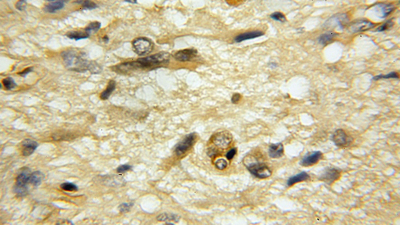 Immunohistochemical of paraffin-embedded human medulloblastoma using Catalog No:116606(USP33 antibody) at dilution of 1:50 (under 10x lens)
