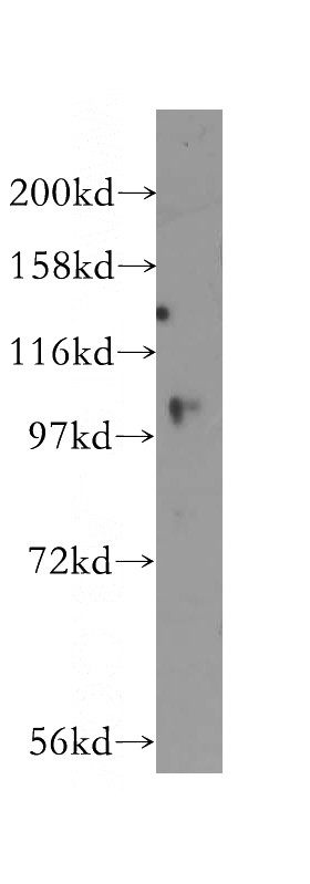 HEK-293 cells were subjected to SDS PAGE followed by western blot with Catalog No:116606(USP33 antibody) at dilution of 1:400