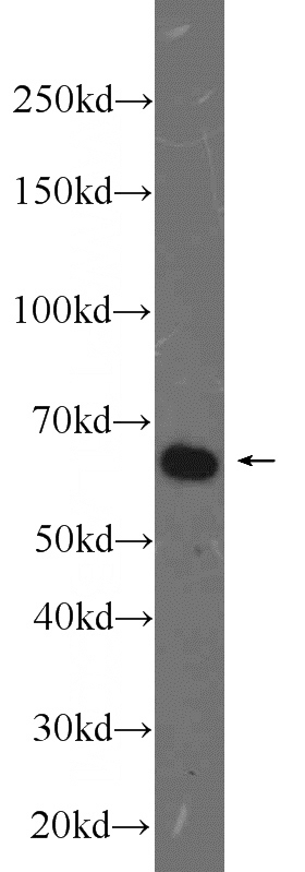 K-562 cells were subjected to SDS PAGE followed by western blot with Catalog No:116681(USP39 antibody) at dilution of 1:1000