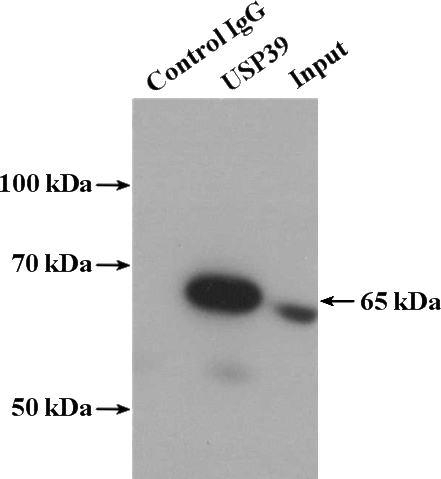 IP Result of anti-USP39 (IP:Catalog No:116681, 4ug; Detection:Catalog No:116681 1:1000) with K-562 cells lysate 3200ug.