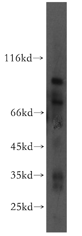 IP Result of anti-UVRAG (IP:Catalog No:116699, 4ug; Detection:Catalog No:116699 1:600) with mouse liver tissue lysate 4000ug.
