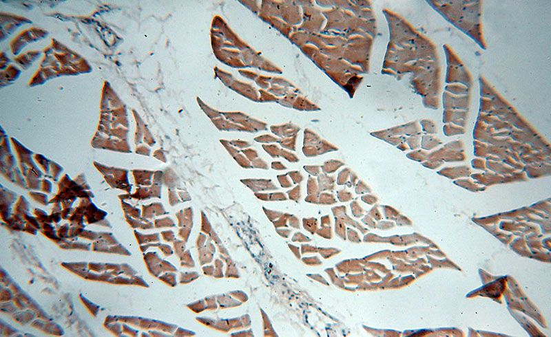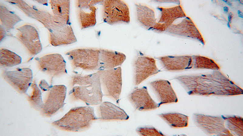 Immunohistochemical of paraffin-embedded human skeletal muscle using Catalog No:116705(VAMP2 antibody) at dilution of 1:50 (under 10x lens)