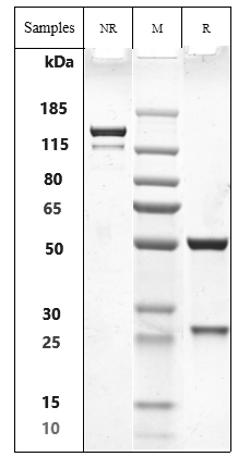 Anti-FZD Antibody (vantictumab) on SDS-PAGE under reducing (R) condition. The purity of the protein is greater than 95%.