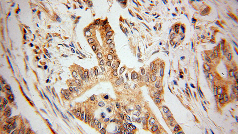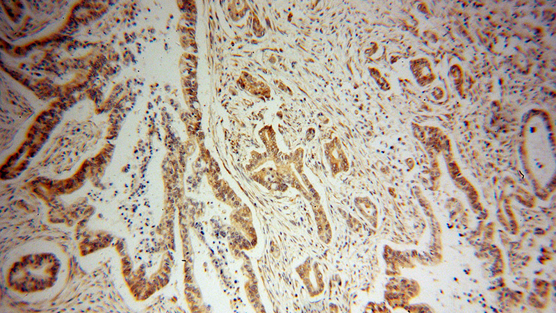 Immunohistochemical of paraffin-embedded human pancreas cancer using Catalog No:116715(VAPB antibody) at dilution of 1:100 (under 40x lens)
