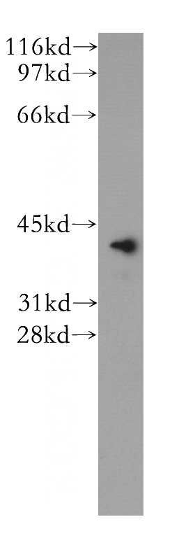 human brain tissue were subjected to SDS PAGE followed by western blot with Catalog No:116717(VASH1 antibody) at dilution of 1:500