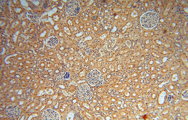 Immunohistochemical of paraffin-embedded human kidney using Catalog No:116721(VAV1 antibody) at dilution of 1:50 (under 10x lens)
