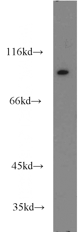Jurkat cells were subjected to SDS PAGE followed by western blot with Catalog No:116721(VAV1 antibody) at dilution of 1:300