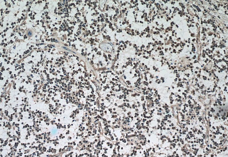 Immunohistochemistry of paraffin-embedded human gliomas tissue slide using Catalog No:107538(VCP Antibody) at dilution of 1:50 (under 40x lens)
