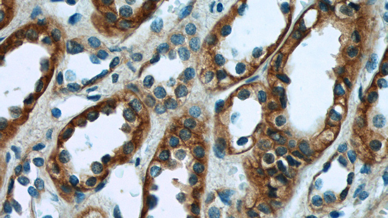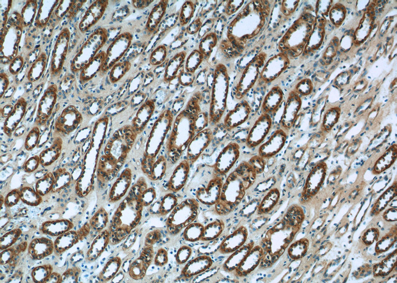 VIPR1 Rabbit Polyclonal antibody. Positive IHC detected in human kidney tissue.