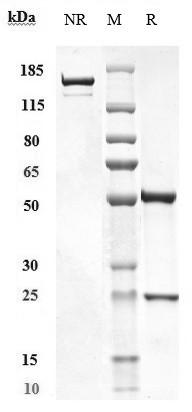 Anti-CD3 Antibody (visilizumab) on SDS-PAGE under reducing (R) condition. The purity of the protein is greater than 90%.