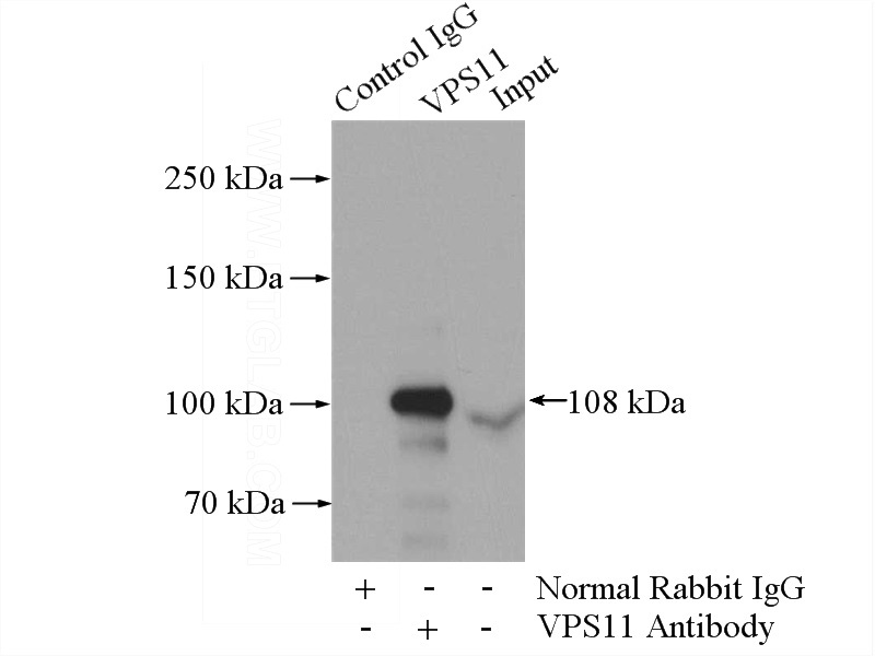 VPS11 Rabbit Polyclonal antibody. Positive FC detected in HepG2 cells. Positive IF detected in HepG2 cells. Positive WB detected in human brain tissue, HEK-293 cells, human heart tissue, human kidney tissue, mouse pancreas tissue. Positive IP detected in HEK-293 cells. Observed molecular weight by Western-blot: 108-112 kDa