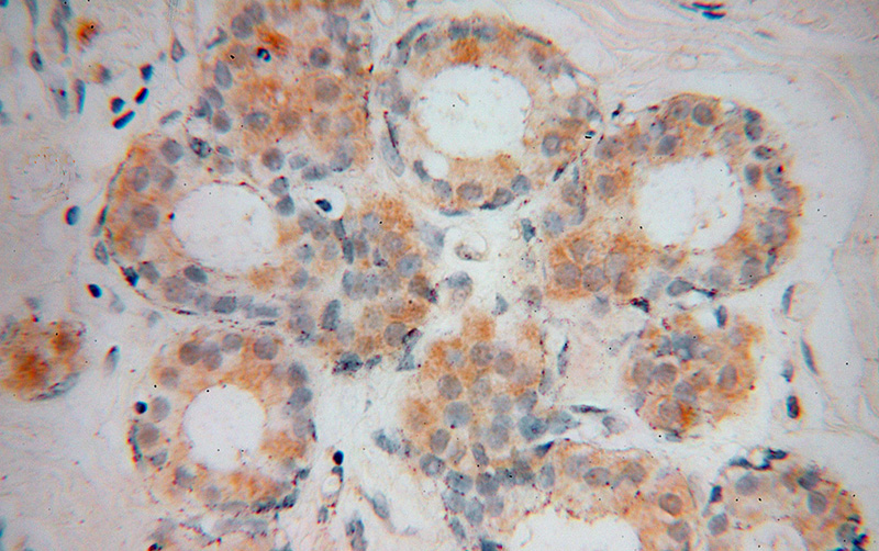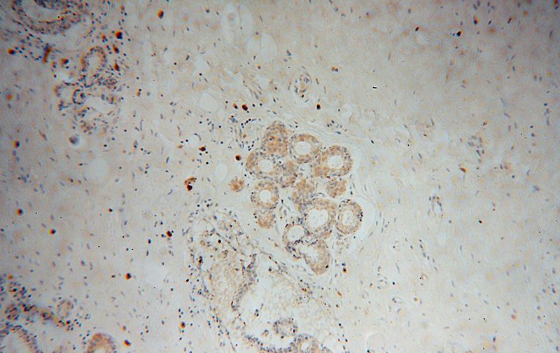 Immunohistochemical of paraffin-embedded human breast cancer using Catalog No:116776(VPS25 antibody) at dilution of 1:50 (under 40x lens)