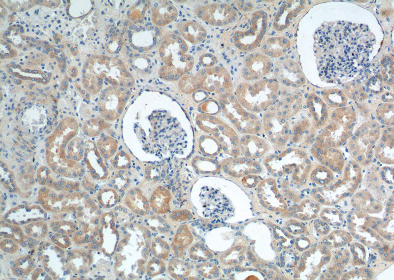Immunohistochemistry of paraffin-embedded human kidney tissue slide using Catalog No:116777(VPS26A Antibody) at dilution of 1:200 (under 10x lens).