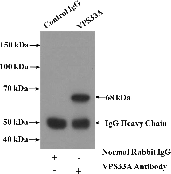 IP Result of anti-VPS33A (IP:Catalog No:116780, 4ug; Detection:Catalog No:116780 1:600) with HepG2 cells lysate 1600ug.