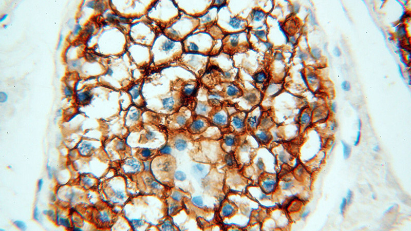 Immunohistochemical of paraffin-embedded human testis using Catalog No:116800(VSIG1 antibody) at dilution of 1:100 (under 40x lens)