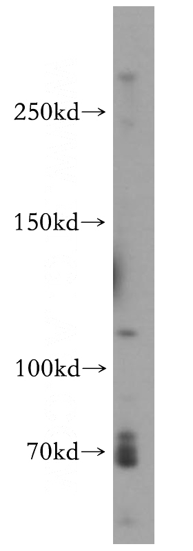 Jurkat cells were subjected to SDS PAGE followed by western blot with Catalog No:116811(VWF, VWFpp antibody) at dilution of 1:500
