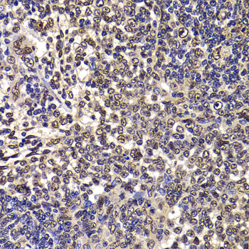 Immunohistochemistry of paraffin-embedded rat spleen using WBSCR22 antibody at dilution of 1:100 (40x lens).