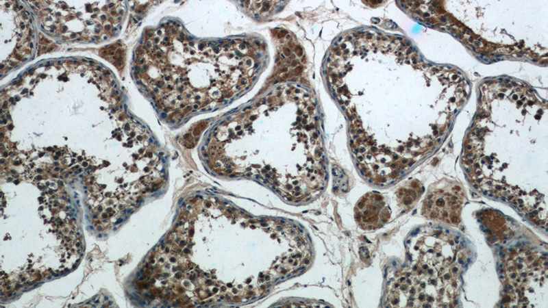 WDR16 Rabbit Polyclonal antibody. Positive IHC detected in human testis tissue, human liver cancer tissue.