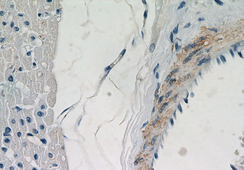 Immunohistochemical of paraffin-embedded human heart using Catalog No:116864(WDR37 antibody) at dilution of 1:50 (under 40x lens)