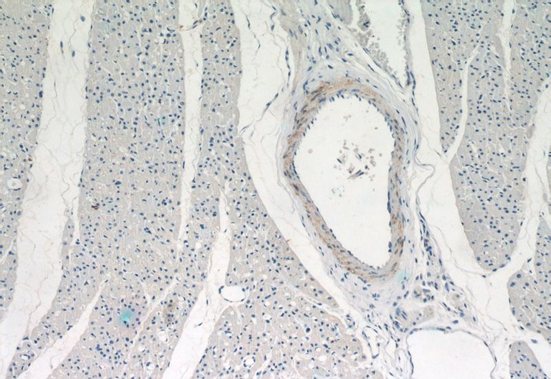 Immunohistochemical of paraffin-embedded human heart using Catalog No:116864(WDR37 antibody) at dilution of 1:50 (under 10x lens)