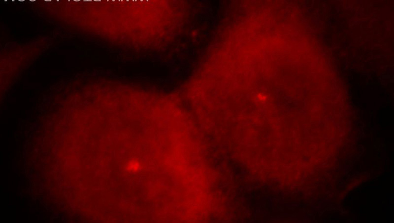 Immunofluorescent analysis of Hela cells, using WDR40A antibody Catalog No:116867 at 1:25 dilution and Rhodamine-labeled goat anti-rabbit IgG (red).