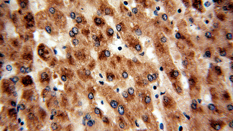 Immunohistochemical of paraffin-embedded human liver using Catalog No:116868(WDR45 antibody) at dilution of 1:50 (under 40x lens)
