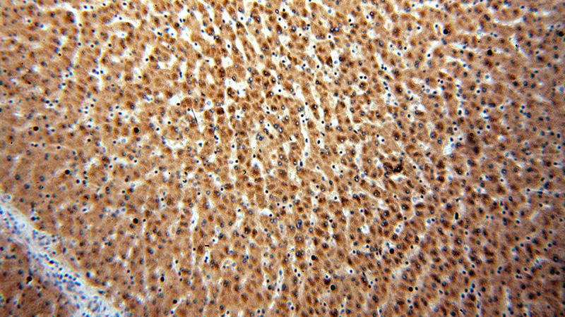 Immunohistochemical of paraffin-embedded human liver using Catalog No:116868(WDR45 antibody) at dilution of 1:50 (under 10x lens)