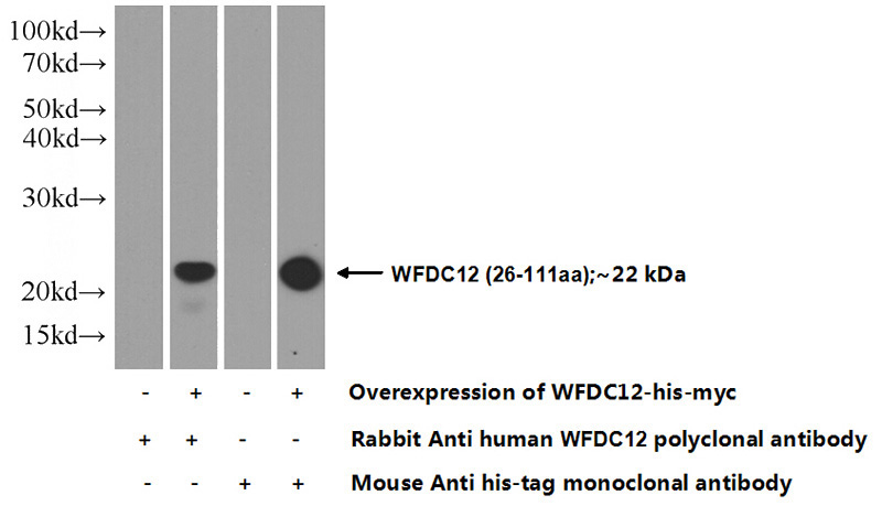 WFDC12 Rabbit Polyclonal antibody. Positive WB detected in Transfected HEK-293 cells.