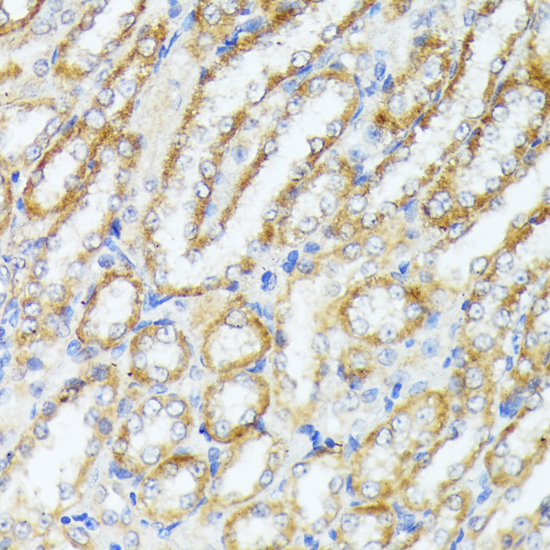Immunohistochemistry of paraffin-embedded rat kidney using WNT1 antibody at dilution of 1:100 (40x lens).