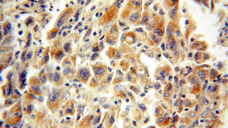 Immunohistochemical of paraffin-embedded human lung cancer using Catalog No:116993(XPNPEP3 antibody) at dilution of 1:100 (under 40x lens)