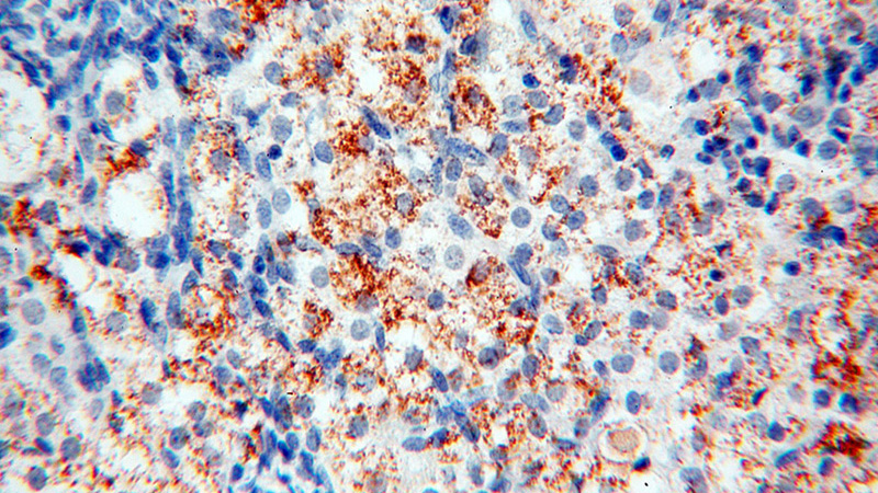 Immunohistochemical of paraffin-embedded human ovary using Catalog No:116994(XPO6 antibody) at dilution of 1:25 (under 40x lens)