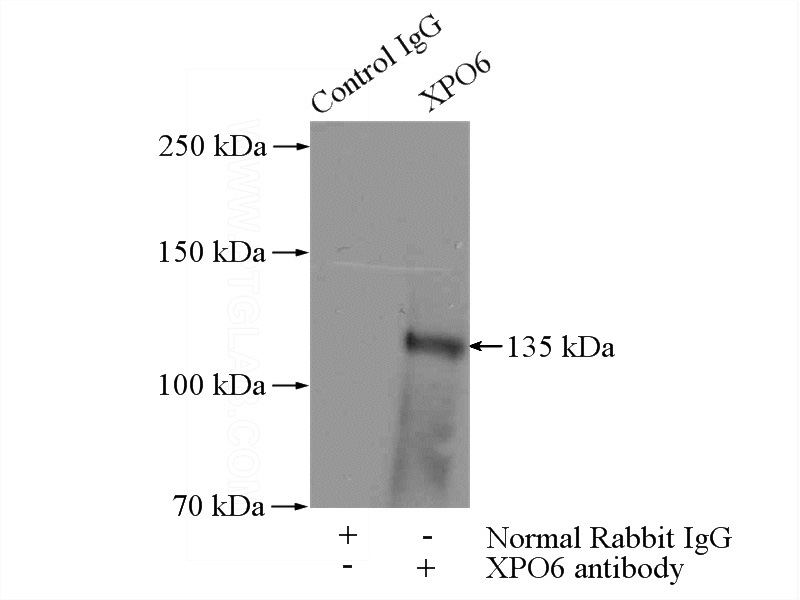 XPO6 Rabbit Polyclonal antibody. Positive IP detected in HeLa cells. Positive IHC detected in human ovary tissue, human heart tissue, human kidney tissue, human lung tissue, human placenta tissue, human skin tissue, human testis tissue. Observed molecular weight by Western-blot: 135 kDa