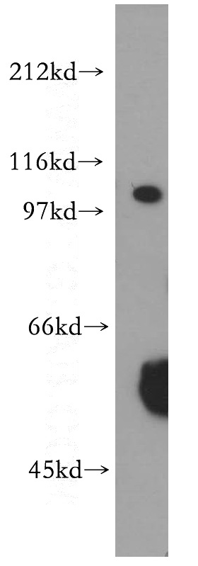 K-562 cells were subjected to SDS PAGE followed by western blot with Catalog No:116995(XPO7 antibody) at dilution of 1:300