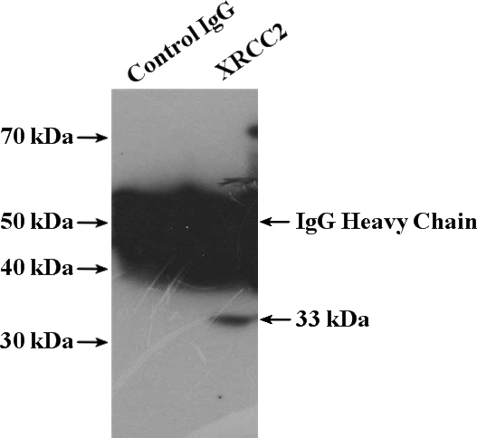 IP Result of anti-XRCC2 (IP:Catalog No:116873, 4ug; Detection:Catalog No:116873 1:500) with K-562 cells lysate 3200ug.
