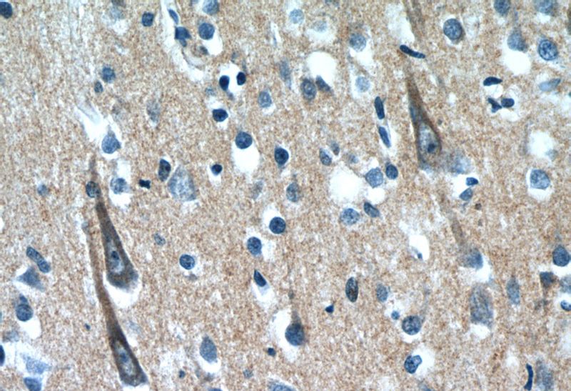 Immunohistochemistry of paraffin-embedded human brain slide using Catalog No:116877(XRN1 Antibody) at dilution of 1:50