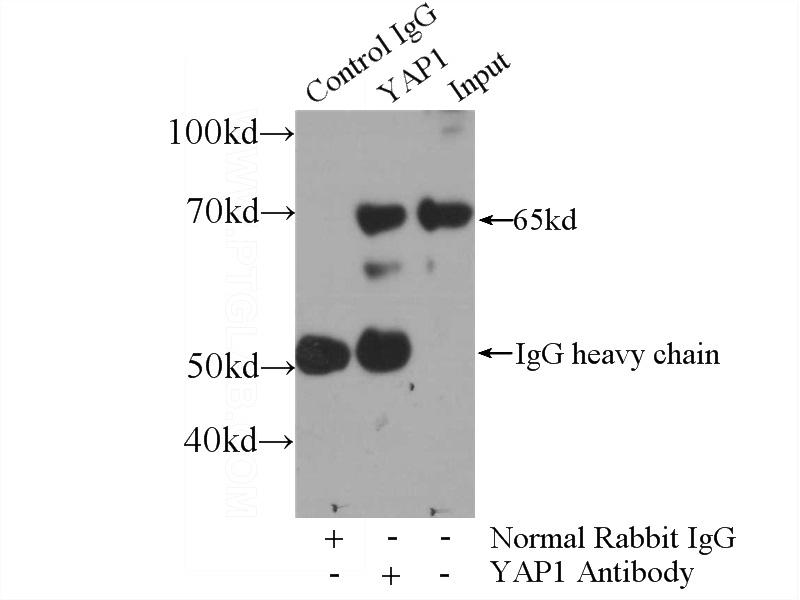 IP Result of anti-YAP1 (IP:Catalog No:116880, 3ug; Detection:Catalog No:116880 1:700) with NIH/3T3 cells lysate 1200ug.