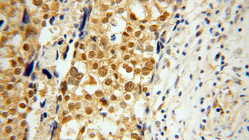 Immunohistochemical of paraffin-embedded human ovary tumor using Catalog No:116880(YAP1 antibody) at dilution of 1:100 (under 40x lens)